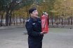 警官指导灭火器使用